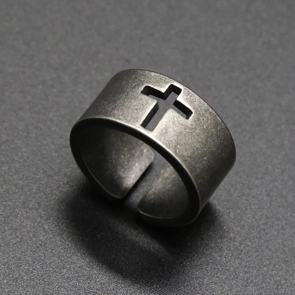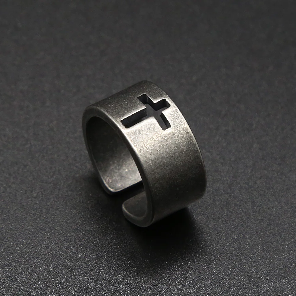 Rotate Freely Stainless Steel Anxiety Rings For Men Women Christian Jesus Cross Spinner Ring Retro Amulet Religious Jewelry Gift