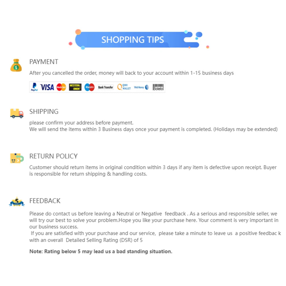 After sales: Our company focuses on product quality and after-sales service. If you have any questions about the order or product quality, please contact the store customer service for feedback in time, and we will patiently answer your questions.